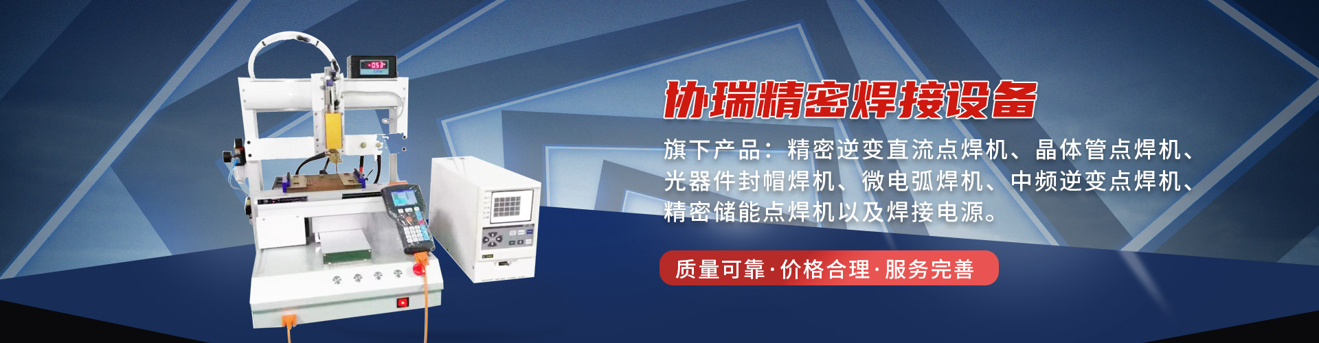 東莞市協瑞精密焊接設備有限公司始于2009年,引進日本電子技術和留學人才,致力于國內高端精密焊接裝備的研發、制造,不間斷地開發各種適合于用戶需求的新產品,成立10多年來公司竭誠為廣大用戶提供更多優質產品服務。 旗下產品: 精密逆變直流點焊機、晶體管式點焊機、光器件封帽焊機、微電弧焊機、中頻逆變點焊機、精密儲能點焊機以及高品質焊接電源,定制各式專業焊接設備。